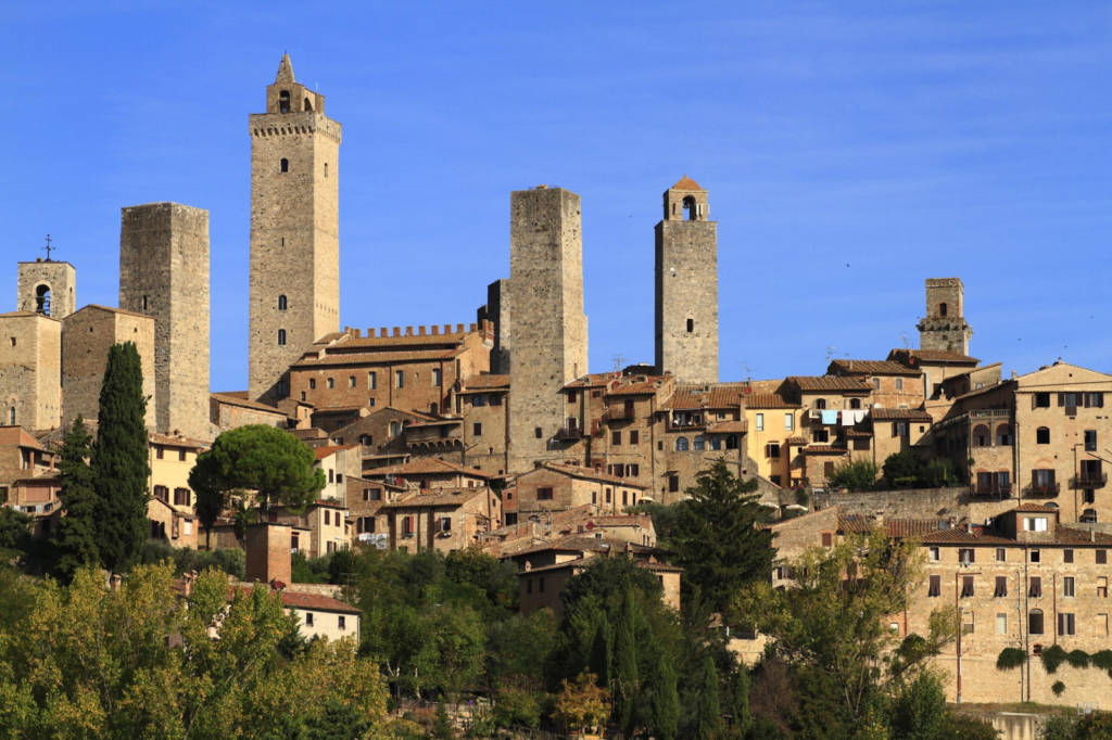 Another unforgettable destination among day trips from Florence is the charming hilltop town of San Gimignano. Famous for its medieval towers that rise above the countryside, the village is often called the “Medieval Manhattan.”