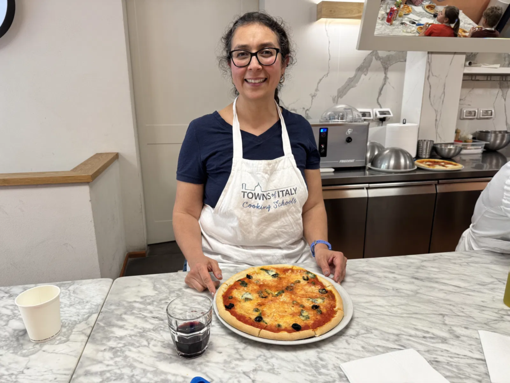 During the class, professional instructors guide participants through each step of the pizza-making process. Travelers learn how to prepare fresh dough, spread tomato sauce, and add traditional toppings before baking the pizza in a hot oven.